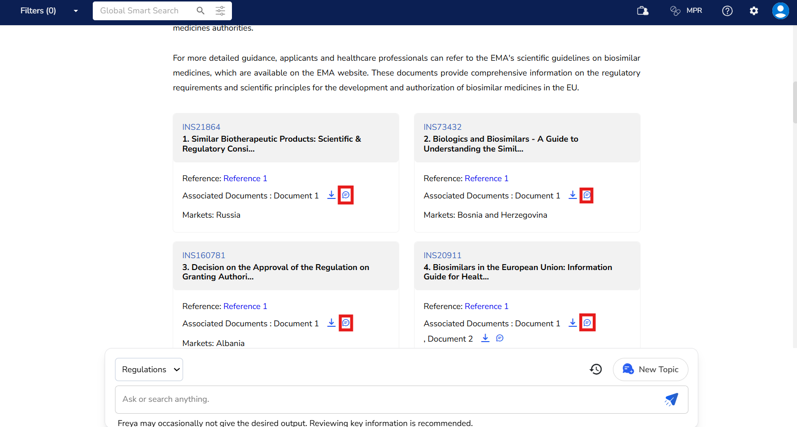 Once Freya provides you with a response and the relevant regulations, just click the